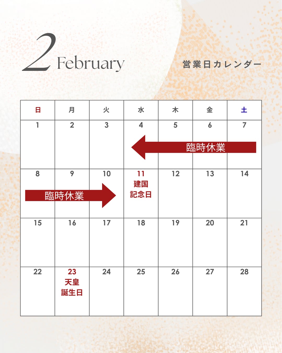 臨時休業のお知らせ